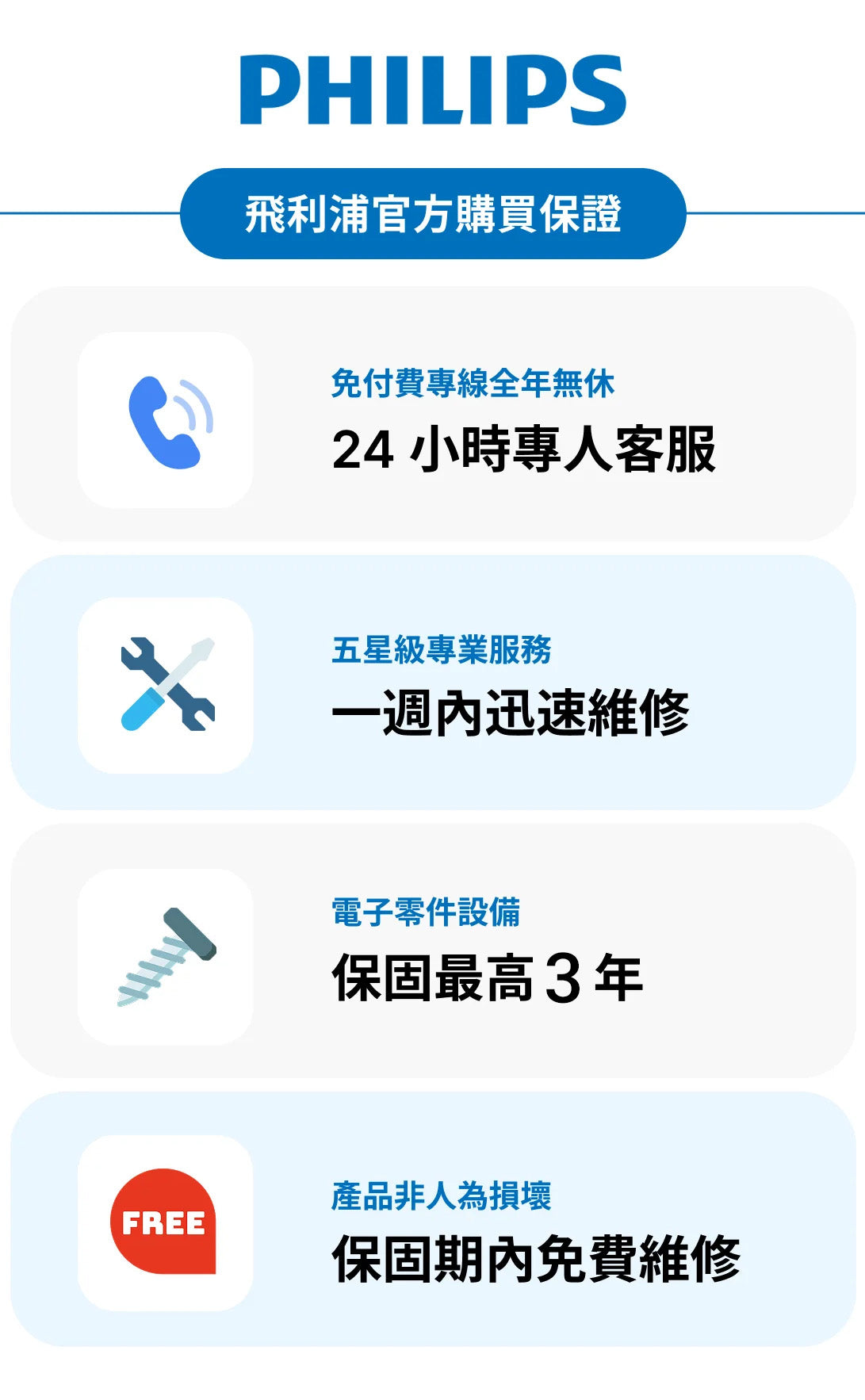 你不知道的是,電子鎖不只是品質很重要,售後服務更重要!飛利浦特別提供非人為失常可以於保固期間內「免費維修」。