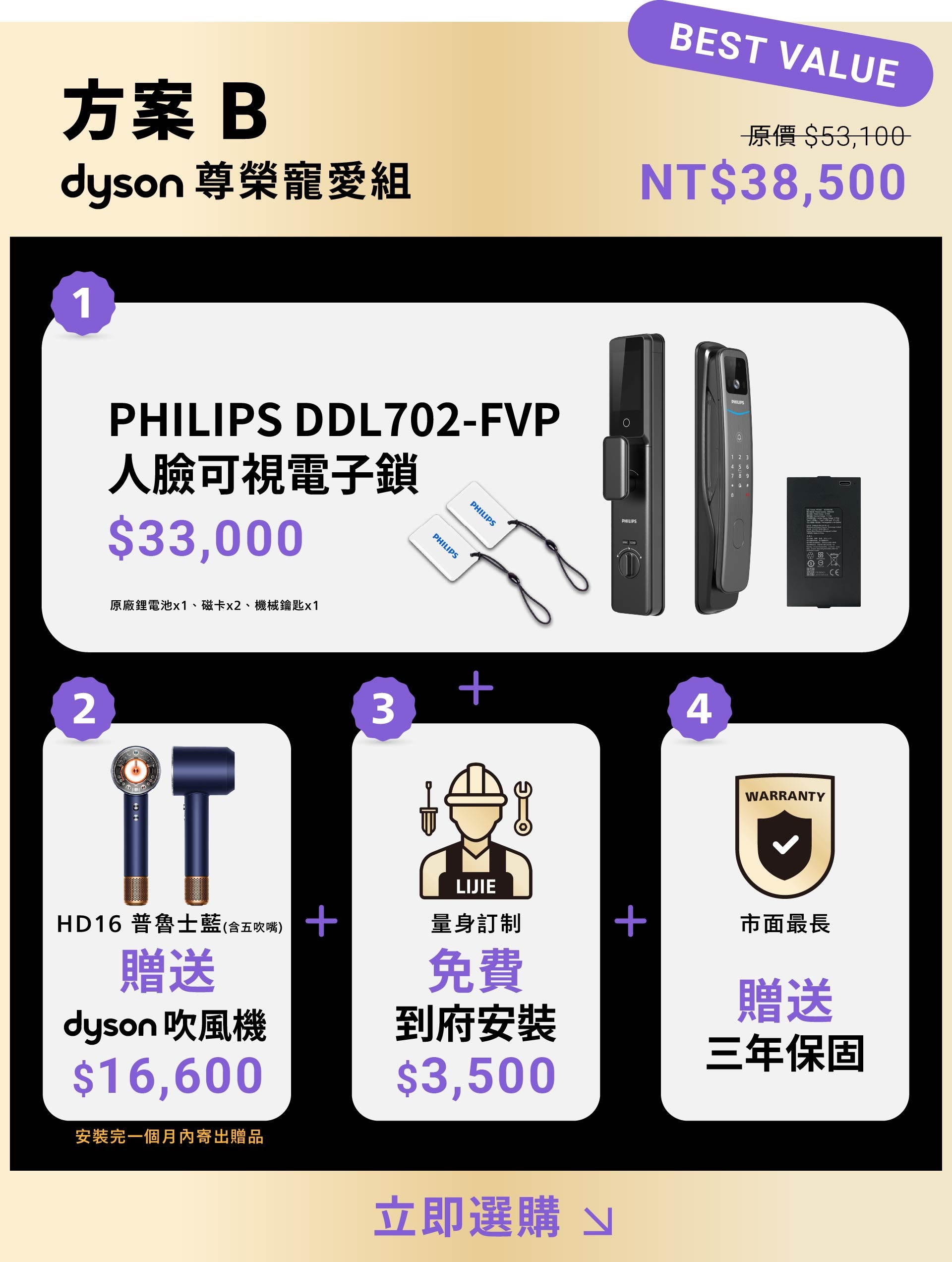 本活動屬「智能鎖 + Dyson 系列贈品」套裝優惠。