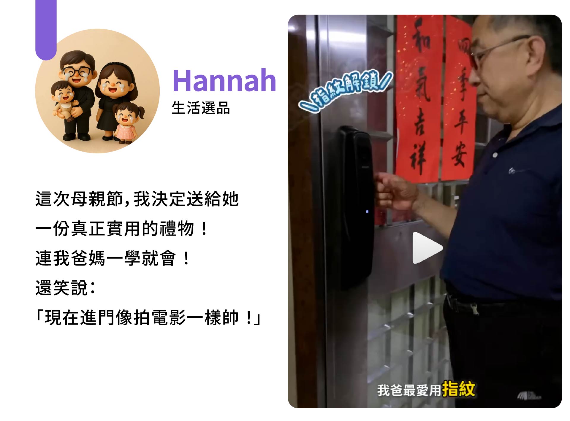 - 感應卡解鎖:可設定多組感應卡,方便家人使用。